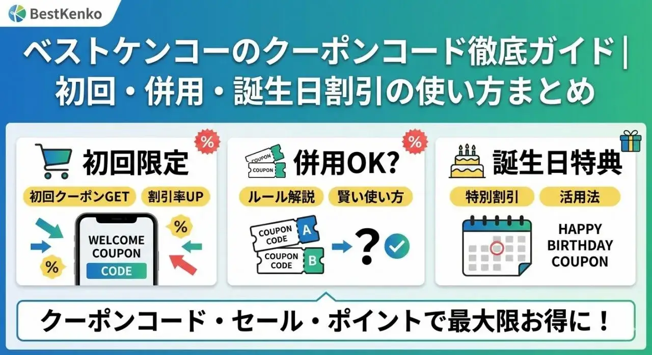 ベストケンコーのクーポンコード徹底ガイド|初回・併用・誕生日割引の使い方まとめ